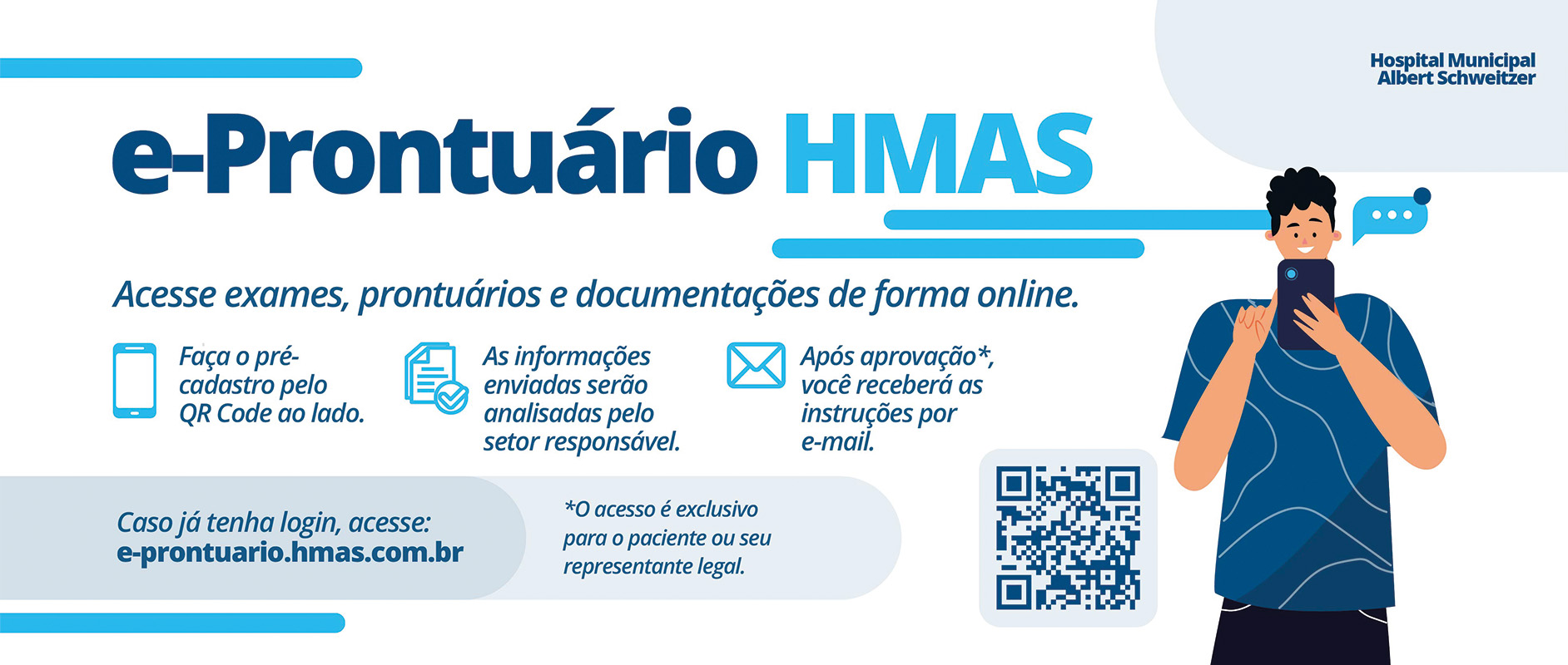 Com o novo E-Prontuário do HMAS, você consulta seus laudos, exames e prontuário de forma rápida e segura, a qualquer hora e de onde estiver — sem precisar retornar ao hospital para buscá-los.